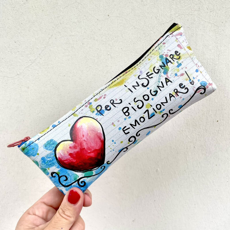Astuccio in ecopelle personalizzabile con illustrazione e scritta a scelta.