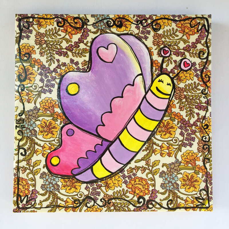 quadro, quadro animali, farfalla, rosa, viola