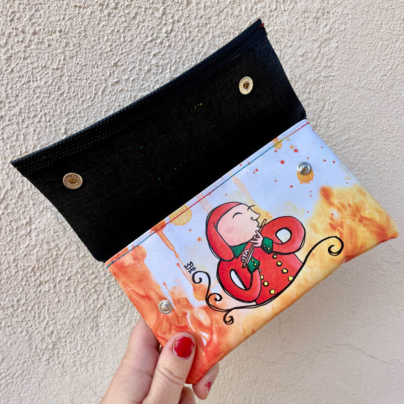Portatutto in PVC a tema Carnevale di Ivrea con Piffero, bottoni per la chiusura, cucito a mano.
