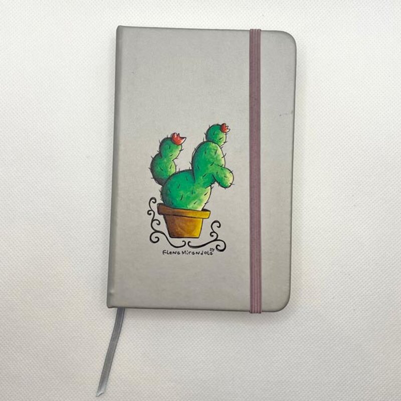 Quadernino argentato con cactus stampato sulla copertina.