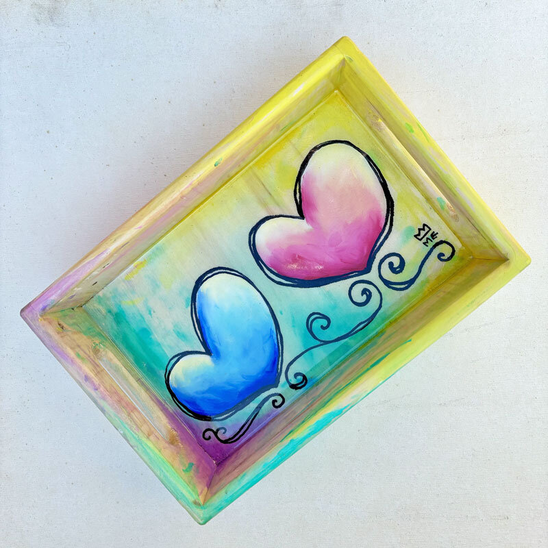 cuori, cuore, oggetti, scatola, legno, vassoio