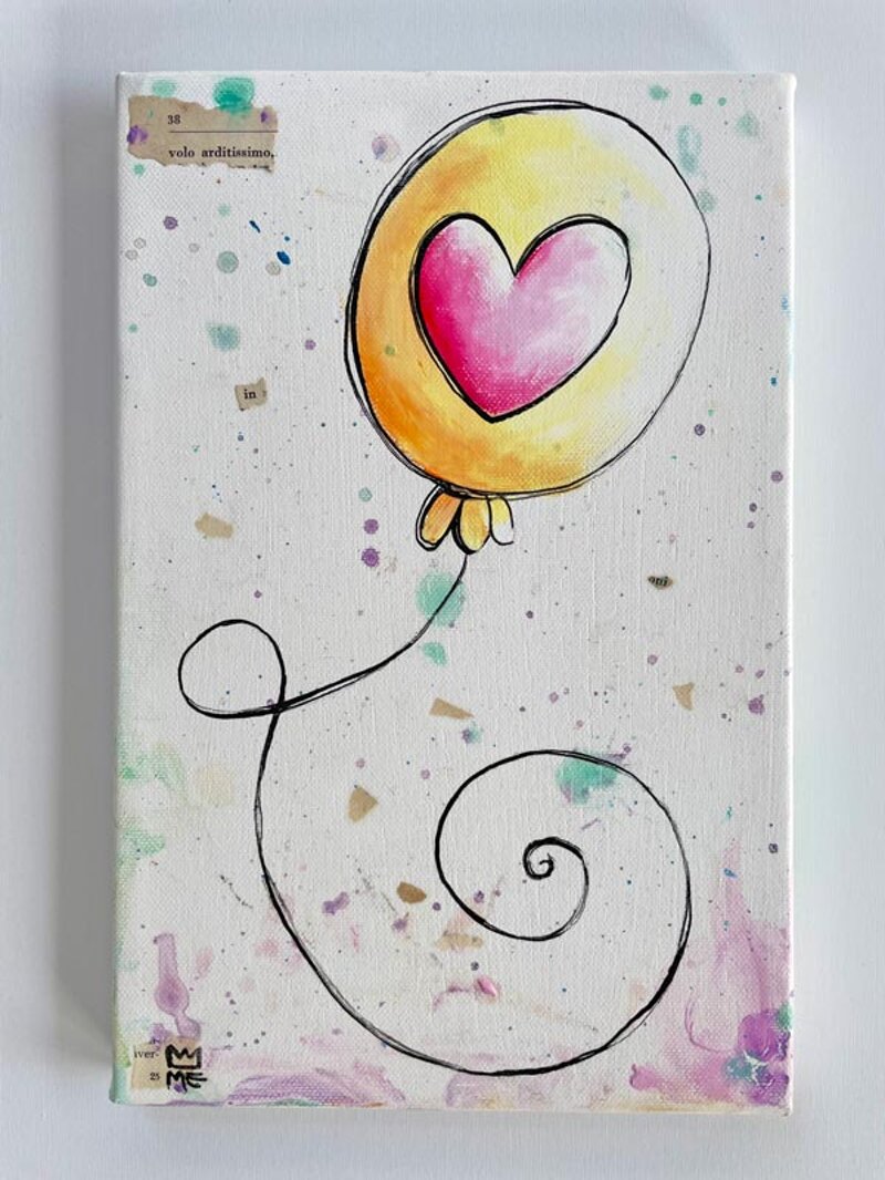 quadro, cuore, palloncino, volo, quadro palloncino, quadro vari